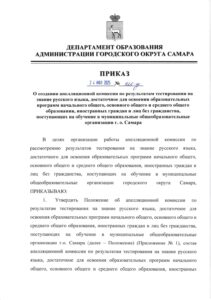 Приказ и Положение Департамента образования о создании апелляционной комиссии по результатам тестирования на знание русского языка